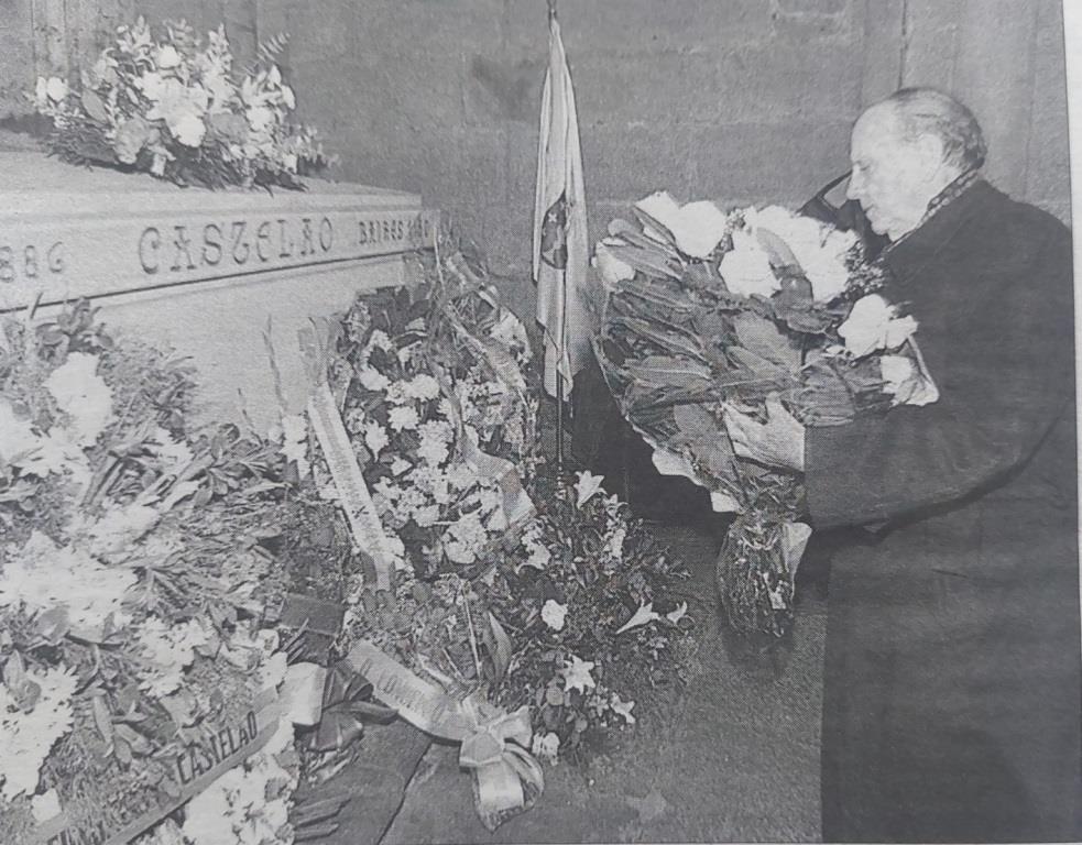 La fotografía es de hace 24 años. Me llaman la atención dos cosas. Que haya un Panteón de Gallegos Ilustres, cosa que nosotros no tenemos y deberíamos tener, un Panteón de Vascos Ilustres, y que Fraga ese día depositara una Ofrenda Floral cuando fue ministro de una dictadura que le trasterró a Castelo y que si le hubieran detenido, lo hubieran fusilado como hicieron con Alejandro Bóveda.