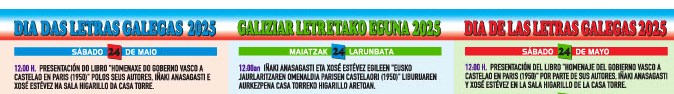 En Santurtzi, al haber una presencia gallega importante y celebrarse allí el Día de las Letras Gallegas, el profesor Xosé Estévez y quien esto escribe, dirigiremos unas palabras recordando aquel evento ya que este año 2025 se conmemora el 75 aniversario del fallecimiento de aquel gran patriota como fue Castelao en su exilio bonaerense.