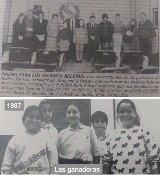 Publico la nota de Deia con el presidente del BBB, Javier Atutxa y una fotografía donde aparece, como una de las ganadoras, Miren Arzalluz hoy directora del Guggenheim de Bilbao.