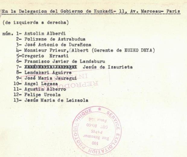 “El pasado domingo 19 de junio escribí, bajo el título «Faltó José Antonio de Aguirre» un artículo en el que narré el viaje reivindicativo que hicimos seis parlamentarios a París y nuestra visita al número once de la Avenue Marceau, sede en la que funcionó el despacho del Lehendakari Aguirre durante su exilio. Sabiendo que iba a omitir involuntariamente algún nombre, usé el del lehendakari creyendo englobar a todos sus colaboradores, aunque era consciente que iba a cometer alguna injusticia, como así fue. Pero, bendita omisión. Ella ha servido para que la hija de la familia que vivió en aquel edificio me enviara una fotografía donde aparecían parte de los que habían trabajado en aquella Delegación y la siguiente carta que habla por sí sola. Dice así: