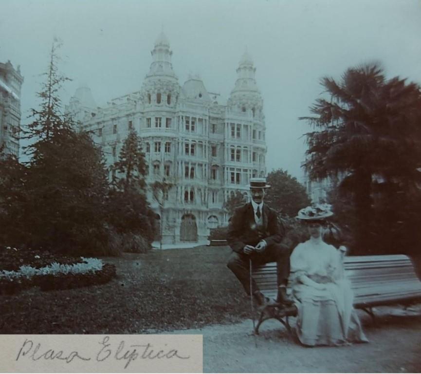 ¿Les gusta la foto?. A mí sí. Es mi amama Aurelia Hernani con su hermano. Y el edificio del fondo le daba señorío aunque fue derruido por una piqueta asesina para dar paso a un edificio impersonal  y muy feo que habría que tirar.