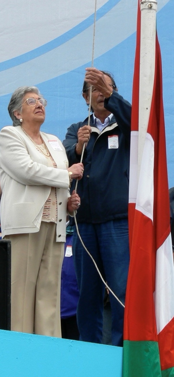 Me gusta mucho esta foto. Es algo que se hacía y ya no se hace. Se trataba de que dos veteranos del Partido, el día del Alderdi Eguna, como deferencia, izaran la ikurriña. En este caso nada menos que Itziar Andonegi y Beti Duñabeitia. Ellos y sus familias enmarcaban la foto. Se sentían reconocidos. Y eso es importante en un partido humanista.