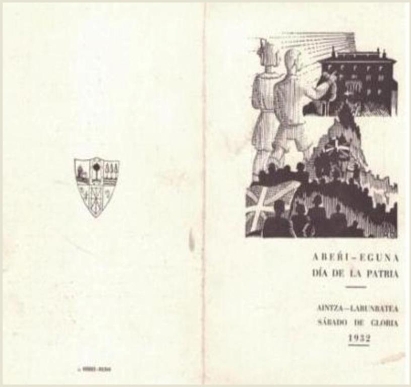 Y ahora saco a la luz éste recordatorio del primer Aberri Eguna de 1932. El dibujo es del artista Martínez Ortiz. Está editado en la imprenta Verdes Atxirika que es la que sacaba adelante todas las publicaciones. Se encontraba en la calle Correo de Bilbao.