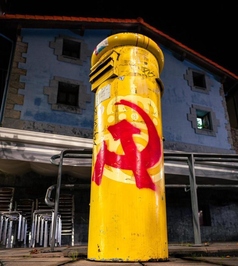 Desaparecida ETA en 2011 parecería que hay añoranza por su existencia en un reducido grupo de antiguos vociferadores de “¡Eta mátalos!”, así como de jóvenes al que sus mayores le han pasado la suficiente dosis de veneno para que vuelvan la cara al pasado. Esta hoz y este martillo pintado en un buzón de correos en Euskadi, nos ilustra hasta que punto el daño hecho por una ideología tan cerrada y terrorista puede pasar de generación en generación.