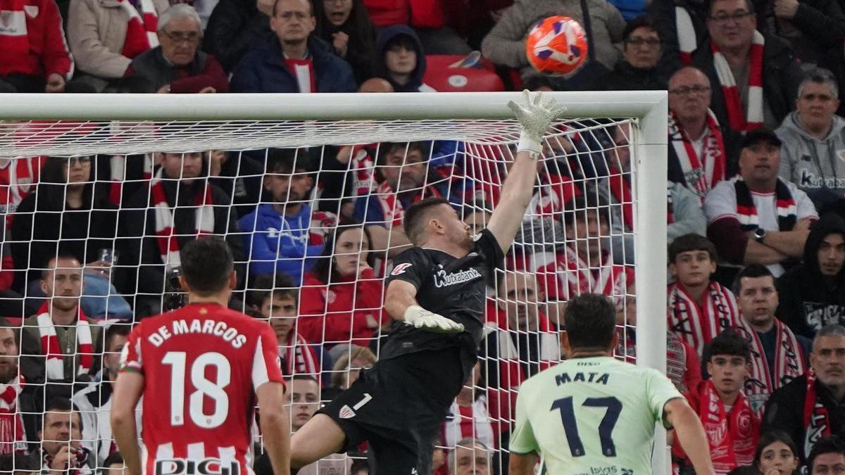 A destacar, otra vez a Simón. A Álex, que por fin ha metido su primer gol de la temporada, y que se lo merecía como el que más, porque ya lo he dicho más veces, a pesar de no tener buenos números (sus 3 asistencias, han sido de los dos partidos anteriores), está siendo uno de los mejores jugadores de este año. Él mismo ha dicho que fue una liberación. Ya está, ya ha metido el primero y van a caer más. También comentaron él y Ernesto, que está jugando con molestias. ¡Si es que este año no se libra nadie de las molestias, que evidentemente les lastran! Me alegro infinito por su gol, y por su juego también. Hablando de molestias, Nico, ayer participó muchísimo y en muchísimas situaciones de peligro, pero se le sigue notando que sufre, que no arranca igual, que le falta,… A pesar de lo cual, sigue siendo determinante. Otra asistencia a su cuenta. Paredes fue la pareja de Laporte y volvió a demostrar que es el que mejor está de los 3. Aymeric se lesionó y tiene mala pinta. Nos ha mirado un tuerto. Le sustituyó Vivian y cometió algún error peligroso. También esperamos que vuelva a ser el del año pasado. De momento, para el miércoles, para jugar contra el París Saint Germain, es el único de los centrales disponibles, ya que ni Laporte, por la lesión, ni Aitor, por sanción podrán jugar. A pensar, Ernesto… A ver qué hace. Por último, mencionar a Sancet, estuvo muy presente, con un montón de remates, pero desviados. Poco a poco se le ve mejor. Le esperamos también porque su calidad la necesitamos como el comer. Ah… Y se me olvidaba Areso, que ayer empezó a justificar lo que se ha pagado por él, lo cual quizá estaba siendo una losa para el jugador, no lo sé. Si juega siempre así, le «perdonamos» el ser tan caro. Estuvo muy bien, poniendo algún balón que debería haber sido gol. Zorionak Jesús! Y perdona que siempre te cambió el nombre.