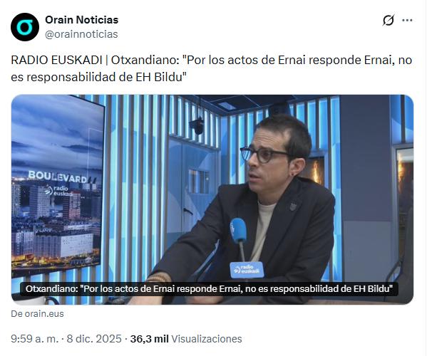 Tuitea Eneko Compains (¿porque en X precisamente se sienten tan bien?) que “Ernai hace lo que tiene que hacer y EH Bildu dice lo que tiene que decir”. Esto es muy sencillo: no. Ernai hace lo que quiere y tiene que ser consecuente con sus actos. Y EH Bildu dice lo que le da la gana y el resto podemos opinar que en política puedes hacer muchas cosas, pero nunca puedes tomar por tonta a la ciudadanía, que es justo lo que está haciendo la izquierda abertzale. Hablando de no tomar por tonta a la gente: no creo que esté de más reflexionar sobre el cómodo acomodo que estas opiniones encuentran en la EHU.