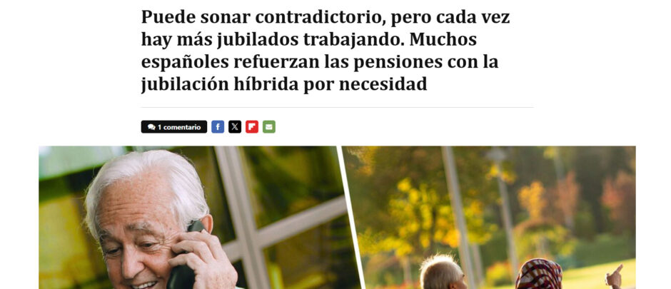 No soy muy optimista con mi pensión: entre los años que me pasé con una beca de investigación (con la que solo coticé parcialmente), los que me he tirado de autónomo y la realidad de los datos de la seguridad social en España, me veo con una jubilación a la americana, trabajando parcialmente hasta que no pueda más. Además de mi futuro, leo en El Blog Salmón que ese es el presente de mucha gente hoy: “Puede sonar contradictorio, pero cada vez hay más jubilados trabajando. Muchos españoles refuerzan las pensiones con la jubilación híbrida por necesidad”. Ese “por necesidad” me deja picueto.