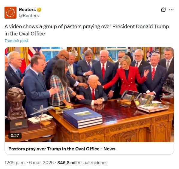 Creo que fue Manuel de Irujo el que dijo que se sentía cada día más abertzale y más católico. Será por la edad, pero me pasa lo mismo desde que comprobé que el agnosticismo en el que cayó mi generación no ha dado ninguna respuesta de ningún tipo a nada. No soy de misa semanal, si acaso, una al año, que no hace daño. De hecho, mi fe consiste en respetar fervientemente a quien cree más que en creer yo. Explico todo esto antes de expresar mi repugnancia por el rezo de Donald Trump en el despacho oval junto a un grupo de pastores, al mismo tiempo que desprecia todo lo que implica ser cristiano.