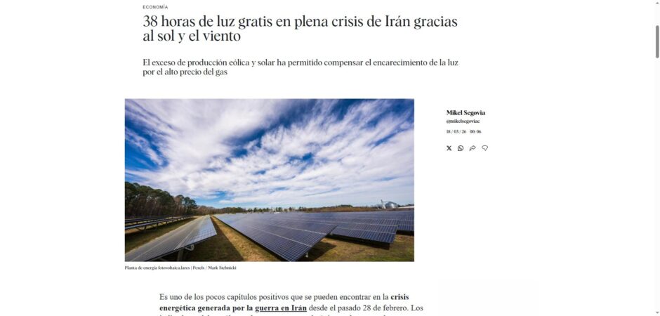 Viernes, puente, parece que el mundo puede irse a la mierda en cualquier momento pero no hace malo. Cualquier día es bueno para recordar que esto está bien: “38 horas de luz gratis en plena crisis de Irán gracias al sol y el viento” (El Independiente), y que de eso nos beneficiamos porque no somos independientes. Si lo fuéramos, pagaríamos mucho más por la electricidad porque no tenemos los recursos para generarla de manera limpia. ¿Cómo lo consigue España? ¿Brujería? Sol y viento también hay en Euskadi, pero plantas solares y eólicas, no. ¿Por qué? Pues porque en este país la izquierda vasca y la española están en contra.