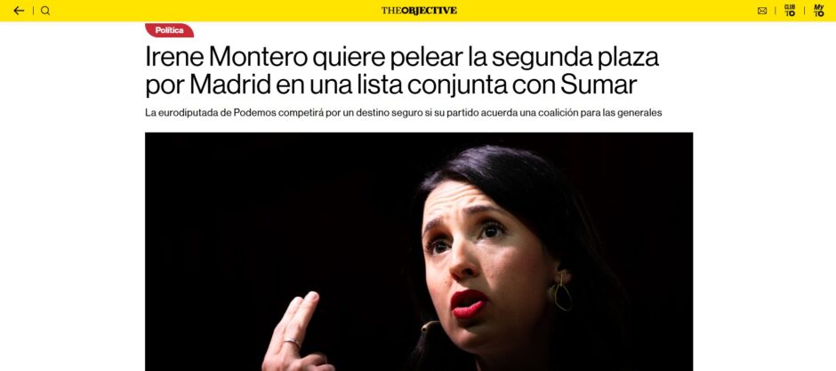 Si Ione Belarra mandase algo en Podemos debería de alzar la voz ante el modo en el que la entente Iglesias-Montero manejan el partido. El primero ya ha colocado su canal de televisión en Movistar. La segunda intenta amarrar su futuro político antes de que acabe la legislatura en Europa, como los reyes franceses que coronaban a sus hijos mucho antes de morir para evitar guerras de sucesión: “Irene Montero quiere pelear la segunda plaza por Madrid en una lista conjunta con Sumar. La eurodiputada de Podemos competirá por un destino seguro si su partido acuerda una coalición para las generales” (The Objective).