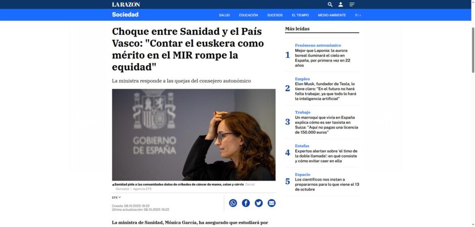 Dice Pello Otxandiano: “Si yo fuera lehendakari, no habría autorizado la concentración de la Falange en Gasteiz”. Esto no es verdad: un lehendakari no puede autorizar ni desautorizar la presencia de un grupo porque en la CAV no le guste (ni a él, ni a la mayoría). Y si no lo sabe, mal candidato a lehendakari es. Pero vale, le compro la idea. Entonces, ¿Pradales podría prohibir concentraciones de grupos que, repetidamente, en Euskadi han vandalizado mobiliario público? En el mismo corte, por cierto, se niega a condenar la violencia: una pena que se les haya vuelto a escapar al resto de medios en Euskadi otra vez.