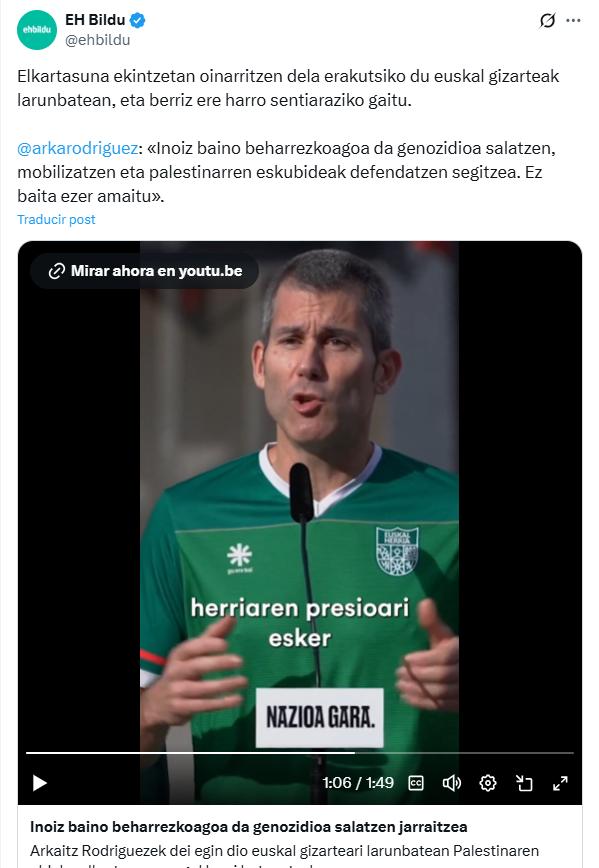 Andan preocupados en Bildu con que les relacionen con los posibles altercados que puedan suceder antes del Euskadi-Palestina, por eso intentan librarse, vía comparecencia ante San Mamés (¿quién se apropia de infraestructuras que son de todos?), y llaman a secundar las convocatorias de Gernika-Palestina y Gure Esku (¿galgos o podencos?). Pero, ¿quiénes son los otros? ¿A quién votan los que van de negro con la cara tapada y bengalas? ¿Quién les ceba? ¿Quién les guía? ¿Quién les lidera antes y durante los partidos del Athletic? ¿No son los mismos que recibían el aplauso de Bildu con la excusa de la Falange y Vito Quiles?