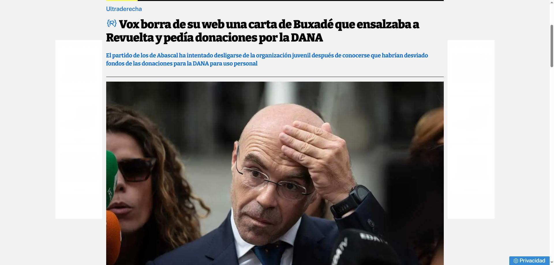 Curiosa semana ha sido esta que empezó con Pello Otxandiano diciendo que Bildu no tiene que responder por las acciones de Ernai, y termina con Vox intentando “desligarse de la organización juvenil después de conocerse que habrían desviado fondos de las donaciones para la DANA para uso personal” (Diario Red). En ambos casos podemos tirar de ironía y cierto rajoyismo: “Esas juventudes de las que usted me habla” no les representan ahora. En el caso español, “Vox borra de su web una carta de Buxadé que ensalzaba a Revuelta y pedía donaciones por la DANA”, según el digital que dirige Pablo Iglesias.