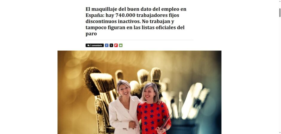 Estos detalles que podemos encontrar en Internet no son, precisamente, menores: “El maquillaje del buen dato del empleo en España: hay 740.000 trabajadores fijos discontinuos inactivos. No trabajan y tampoco figuran en las listas oficiales del paro” (El Blog Salmón). Lo de dejar de llamar “parados” a los parados para que dejen de contar podría ser un chiste pero parece que es la realidad: “El llamado ‘paro oculto’” muestra un “mercado que combina elevadas cifras de ocupación con un volumen creciente de inactividad”. Una fórmula que “ha dejado de ser residual y se ha convertido en una herramienta ampliamente utilizada”.