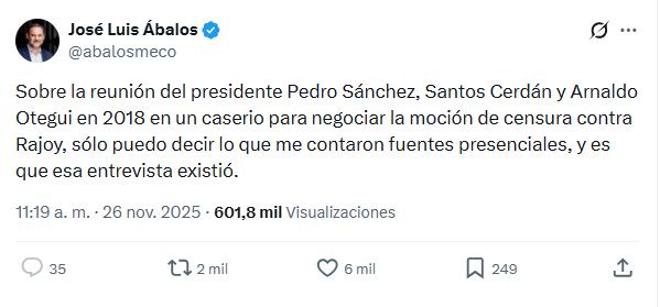 La entrada de Santos Cerdán en la cárcel no afectó a la gobernabilidad de España, más allá de la grave crisis que abrió en el PSOE, porque el que fue mano derecha de Sánchez ya había dejado de ser diputado. Pero Ábalos, el del tuit que desarbola la contundencia que gasta Otegi, sigue siendo diputado y, si entra en la cárcel sin dimitir, podría generar un lío de pantalones largos en el Congreso, donde el PSOE necesita todos los votos. Sin embargo, lo que es la vida, la cerrazón de Junts y Podemos rebaja el efecto de lo que podría ser una debacle, por un solo voto, generado por una detención de la otra mano derecha de Sánchez en el PSOE.