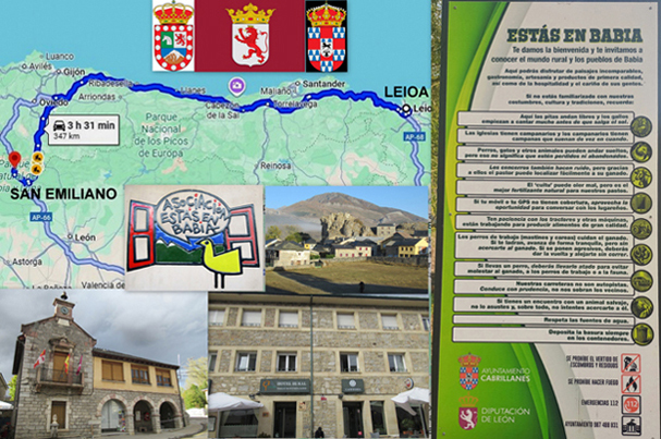 La décima escapada del año la realizamos del 13 al 17 de octubre teniendo como destino la comarca leonesa de Babia y, más en concreto la población de San Emiliano, uno de los dos municipios que, junto a Cabrillanes, forman esta comarca. Para pasar las cuatro noches elegimos un sencillo alojamiento situado a 347 km de Leioa, que se realizan casi todos por autovías y autopista en unas tres horas y media. Se trata del Hotel Rural Valle de San Emiliano, que cuenta también con un buen bar-restaurante. Limítrofe con Asturias, esta comarca es conocida por la expresión «estar en Babia», relativa a la situación de estar distraído. Sin embargo, para sus habitantes tiene muchas ventajas, tal como recoge el cartel que incluyo a continuación, más asociadas a la serenidad de sus valles y montañas, en las que nacen los ríos Luna y Sil.