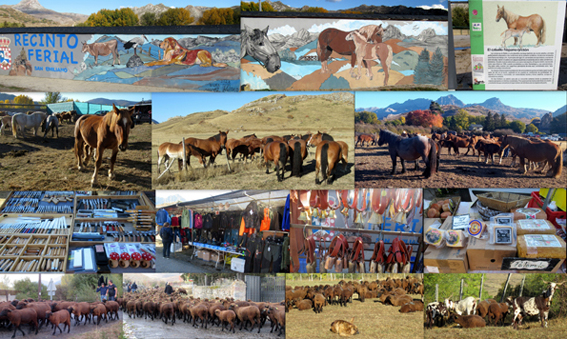 Como nos enteramos de regreso de Torrestío, el 14 de octubre decidimos reprogramar la jornada para, tras el desayuno, acercarnos al Recinto Ferial de San Emiliano para acudir a feria de ganado equino, principalmente de caballo hispano-bretón, raza reconocida oficialmente en 1998, fruto del cruce de yeguas españolas con sementales bretones llevado a cabo a comienzo del siglo XX. Estos caballos, de los que Babia es el referente estatal, pastan en semilibertad en los montes de la zona, siendo destinados a la producción de carne. En la feria también había puestos de venta de diferentes productos. Otro día vimos un enorme rebaño de varios centenares de ovejas merinas negras, en su trashumancia hacia Extremadura.