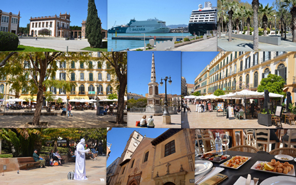A continuación nos desplazamos al centro de Málaga. Resulta difícil aparcar, así que lo hicimos en el parking más grande, el del Muelle Uno, bajo el Centre Pompidou, así que caminamos por lugares que ya conocíamos, pasando por el parque de Málaga, y la zona en la que amarran los cruceros. Teníamos un lugar pendiente de visitar, la plaza de la Merced, en la que se encuentra el obelisco en homenaje al General Torrijos, que luchó por la Constitución y fue fusilado en Málaga en 1831. Pasamos frente a la iglesia de Santiago y, como nos gustó dos días antes, volvimos a comer a la calle Granada.