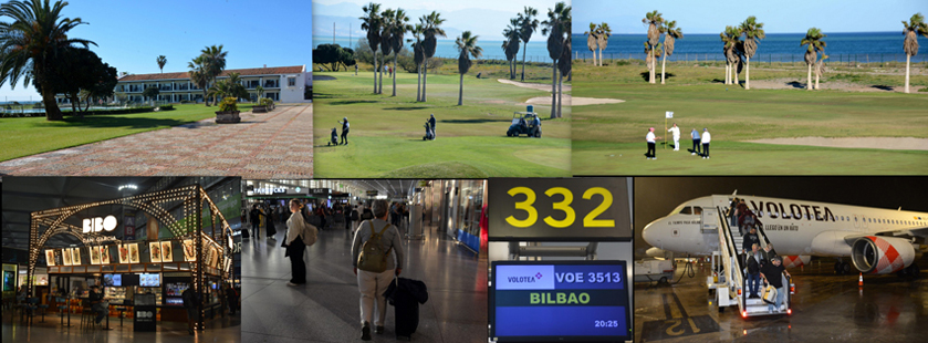Rápidamente regresamos al Parador Málaga Golf, donde habíamos prorrogado la estancia hasta las 6 de de la tarde, así que solo nos quedó un breve tiempo para contemplar por última vez el mar Mediterráneo desde la terraza de la habitación, mientras veíamos cómo jugaban al golf en el campo que teníamos al lado. El aeropuerto lo teníamos a tan solo 5 km, así que pudimos devolver el coche antes de la hora prevista, las 18:30, y embarcar con tranquilidad pues nuestro vuelo de Volotea salía a las 20:25 h llegando al aeropuerto de Bilbao a las 10 de la noche.