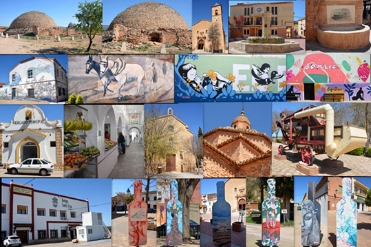 El día 8 de abril iniciamos a jornada desplazándonos 67 km hacia el este hasta la población de Alpera, que ronda los 2.300 habitantes y cuenta con varios atractivos en la periferia de su centro urbano, acercándonos en primer lugar al curioso Pozo de la Nieve, construcción perteneciente a la arquitectura de piedra seca para almacenar hielo. Tiene un diámetro de 17,5 metros, una profundidad de 10 y una cúpula de 7 metros de altura. Una vez en el centro visitamos la parroquia de Santa Marina, construida durante los siglos XVII y XVIII, el antiguo lavadero y el mercado. Contemplamos también el Ayuntamiento, la ermita de San Roque, los hermosos murales y las decoradas botellas de vino de la Bodega Santa Cruz, a la que luego fuimos a comprar vino, que decoran la población. Cuenta también con la Trilladora T-110, fabricada en Gasteiz en 1914.