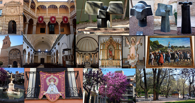 El 7 de abril, tras instalarnos en el Parador y quedar con nuestros amigos madrileños, nos dirigimos al centro de Albacete, distante 5,5 km, dejando el coche en el Parking Catedral, ubicado junto al primer edificio que visitamos, la Catedral de San Juan Bautista, que se comenzó a construir en 1515, aunque se fue demoliendo según se avanzaba, datando la que ahora vemos del año 1949, cuando se concluyó en estilos neorrománico y neogótico. De su decoración interior destacan las pinturas realizadas por Casimiro Escribá, que constituyen una de las mayores obras pictóricas del mundo realizadas por un único autor, representando episodios de la Biblia.