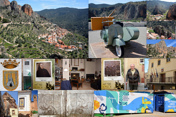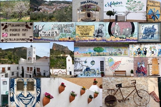 Como nos pillaba de paso, 38 km más tarde nos detuvimos en Molinicos, un pueblo de 785 habitantes, que fue el tercer escenario de la película “Amanece, que no es poco” y que se encuentra bañado por el arroyo de Fuente de la Higuera. Sus casas están casi todas en cuesta, siendo prácticamente el único lugar llano la plaza que ocupan el antiguo y el nuevo Ayuntamiento. Sin embargo, lo que más llamó mi atención fueron los numerosos murales que aparecen dispersos por la población.
