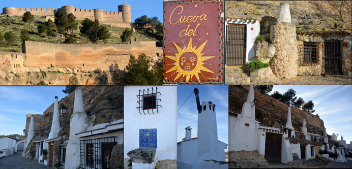 Aunque la tarde avanzaba, pese a quedarnos lejos, 73,5 km, como estaba a tan sólo 12 km del Parador, decidimos acercarnos a Chinchilla de Monte-Aragón, localidad dominada por el símbolo de esta población, el castillo de origen árabe. Aunque ya habíamos estado en Chichilla diez años antes, no conocíamos un lugar muy pintoresco, las Casas del Agujero, cuevas-vivienda excavadas en la roca, cuyo origen se remonta al siglo XVI, cuando la población musulmana y judía fue expulsada de sus viviendas.