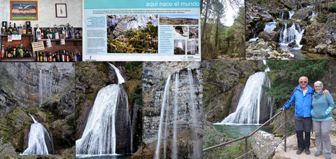 Iniciamos el día 10 con muchos kilómetros por delante hasta Riópar, donde nos detuvimos a tomar un café en el restaurante Los Bronces, sorprendiéndonos que sobre la barra había un póster del Athletic. Nuestro destino estaba 8 km más adelante en el parking de la explanada de los Chorros, punto de partida para subir caminando durante menos de media hora por un sendero perfectamente acondicionado, hasta la base de un escarpe de unos trescientos metros de altura. En él nace el río Mundo, precipitándose el agua desde la cueva de los Chorros en forma de cascada de 86 metros de altura. Caminando otros veinte minutos llegamos al segundo mirador, desde donde se contempla de más cerca la cascada superior, que resulta impresionante cuando se produce el “reventón”, tras varios días de lluvias intensas He estado en dos ocasiones en este lugar, pero no he tenido la suerte de coincidir con ese fenómeno.