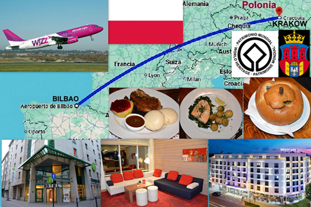 Para este año había pensado hecer una escapada cada mes, así que la duodécima del año tenía como destino la ciudad polaca de Krakow (Cracovia), decisión que tomamos al conocer que Wizzair, ponía a partir de diciembre un vuelo directo desde Bilbao a esta ciudad, de tres horas de duración, así que el 30 de agosto compré los billetes y fui el primero en reservar asientos. La fechas, del 13 al 16 de diciembre, pero tampoco pudo ser. Habría sido la tercera vez que visitábamos esta encantadora ciudad cuyo centro histórico forma parte del Patrimonio de la Humanidad de la UNESCO desde 1978, eligiendo para ello el Hotel Mercure Krakow Stare Miasto. Como cuando hablé de Polonia prometí hacer una entrada específica sobre Cracovia aprovecho esta oportunidad rememorando el viaje a Polonia de 2015, en el que nos alojamos en esta ciudad del 16 al 20 de junio, en el Hotel Campanile Krakow Old Town, muy bien situado por cierto. En Cracovia se come muy bien pero por las noches no faltaba la zurek, sopa servida dentro de una hogaza de pan.