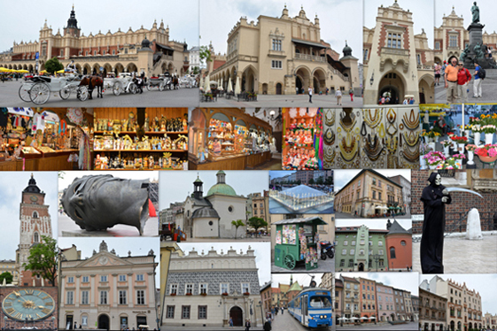 Sin darnos cuenta hemos llegado al lugar más visitado de Cracovia, la Plaza del Mercado (Rynek Główny), fundada en el siglo XIII y presidida por la Lonja de los Paños, el fastuoso palacio de Sukiennice construido 1257 pero reedificado en 1555 tras sucumbir en un incendio, que cuenta con numerosos puestos de artesanía y recuerdos. En la plaza están también, el monumento al poeta Adam Mickiewicz, la torre del siglo XIII del primitivo Ayuntamiento, el Museo Subterráneo (Rynek Underground Museum), la coqueta Iglesia de San Adalberto y la modernista escultura Eros Bendato, de Igor Mitoraj.