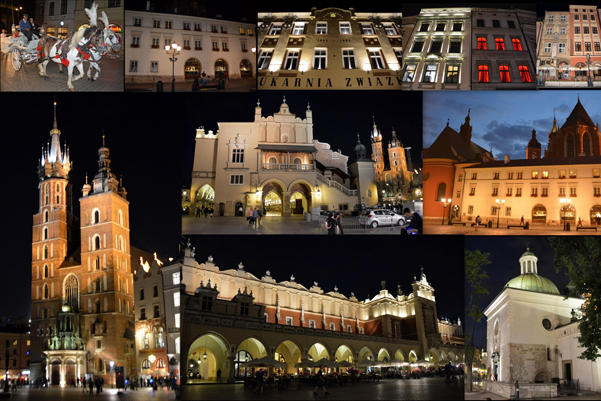 Como ya he comentado pasamos cuatro noches en Cracovia, siendo frecuente ir a cenar al entorno de la Plaza del Mercado, situado a unos 500 metros del Hotel, así que aproveché para fotografiar algunos edificios por la noche, destacando la Lonja de los Paños, la Basílica de Santa María y la Iglesia de San Adalberto. La visita nocturna del centro histórico de Cracovia merece realmente. Además los restaurantes cierran bastante tarde y hay ambiente nocturno hasta el amanecer. De hecho a las 7 de la mañana era frecuente ver pasar a gente por la puerta del hotel que venía de gaupasa.