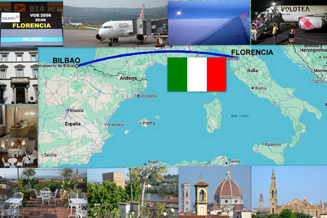 Con bastante retraso, inicio el relato del quinto viaje del año con destino a la italiana ciudad de Florencia (Firenze), realizado del 10 al 14 de junio. He visitado esta ciudad en tres ocasiones, pero no lo hacía desde el año 2015. El vuelo de Volotea nuevamente salió con retraso, así que llegó bastante más tarde de las 22:55, hora a la que tenía prevista su llegada, pero ni tan mal, pues conseguimos aterrizar en Florencia, no como el sábado anterior que voló a Pisa, teniendo luego una hora de viaje en autobús. También tuvimos la suerte de que, aunque el aeropuerto estaba a punto de cerrar, había un taxi de guardia que nos trasladó al Hotel Eurostars Florence Boutique ****, en el que nos alojamos las cuatro noches. Fue un buen acierto pues tenía un buen aire acondicionado, estaba a solo 550 metros de nuestro primer destino, la Basílica de Santa Croce y desde su terraza había una excelente vista del centro histórico, de donde sobresalía el Duomo.