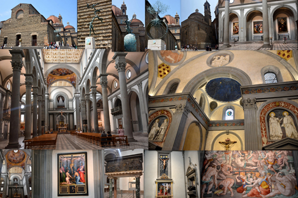 Tuvimos que salir a la calle para acceder a San Lorenzo, la iglesia parroquial de los Médici, una familia de banqueros rica y poderosa, que gobernó Florencia durante casi tres siglos. Es una de las iglesias más antiguas de Florencia, aunque su fachada está sin terminar. En su interior destacan el tabernáculo de mármol, las capillas de los Ginori, Mayor y Martelli, en la que hay obras de Donatello, Filippo Lippi y Desiderio da Settignano y, por supuesto, la Sacristía Vieja de Brunelleschi.
