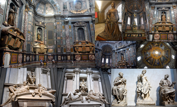 La entrada conjunta para la iglesia, la biblioteca y la cripta no sirve para otra zona de la iglesia con acceso separado, que pertenece al Museo Cappelle Medicee, donde se encuentra la espectacular Capilla de los Príncipes (Capella dei Pricipi), una sala octogonal convertida en mausoleo de los Grandes Duques de Toscana y sus familias, obra del arquitecto Matteo Nigetti. Aquí también se encuentra la Sacristía Nueva, obra de Miguel Ángel (Sagrestia Nuova), construida en el siglo XVI como panteón de los Medici. Lo más curioso es que cada tumba tiene en su base un par de estatuas, masculina y femenina, reclinadas.