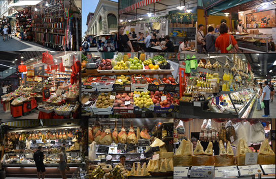 Empachados de tanta cultura, decidimos acercarnos al Mercato Centrale, que se encuentra a tan solo 170 m. La calle que le da acceso, la via dell’Ariento, está repleta de puestos de venta de prendas de piel: cinturones, bolsos…, algo muy habitual en Florencia. Conocido también como Mercado de San Lorenzo, data del siglo XIX, cuando Florencia fue la capital de Italia. Lo primero que encuentras nada más acceder a su interior son pequeños restaurantes y puestos de comida. Luego nos detuvimos en los de venta de quesos y en los más coloristas, de frutas, verduras y hortalizas. Abre de 9 a 23 h.