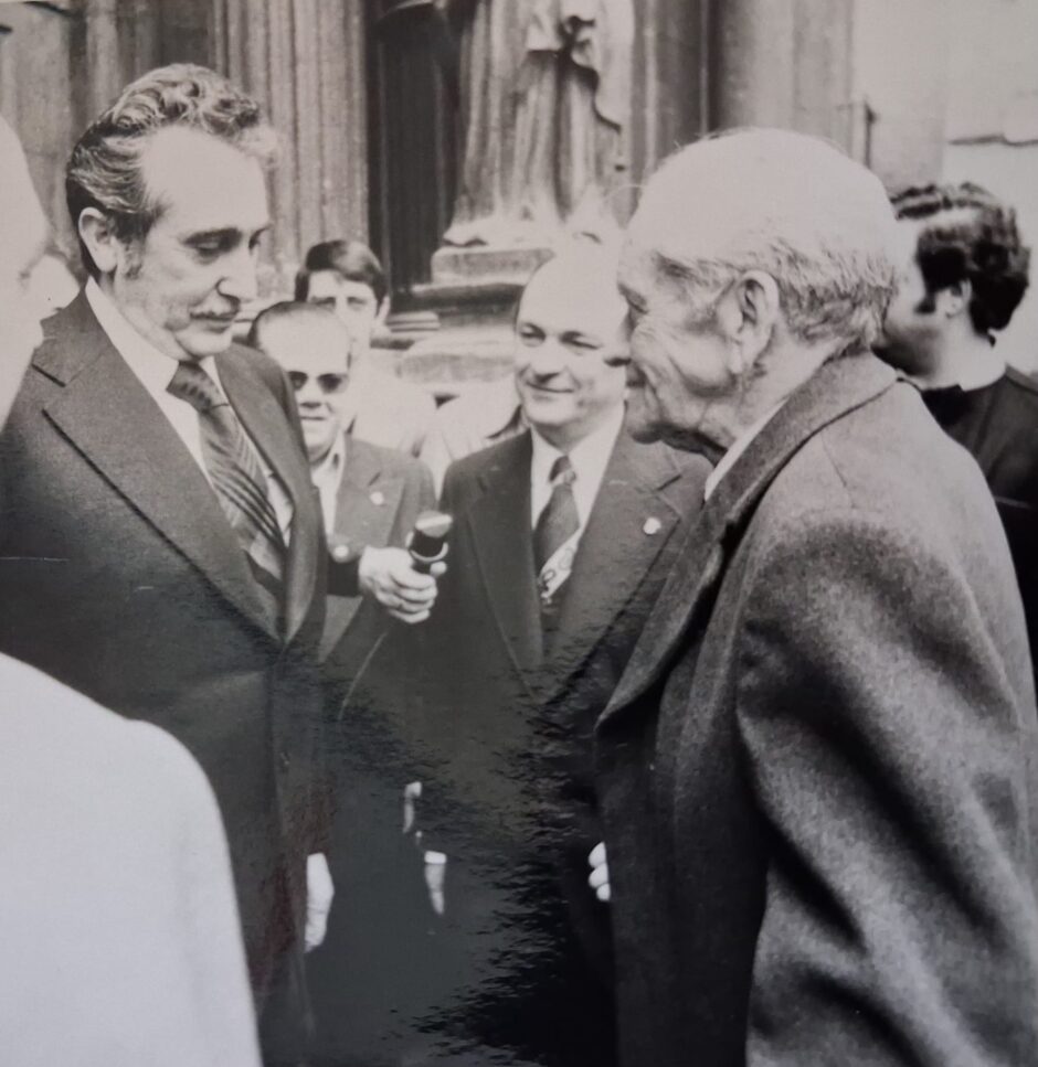 Y en esa foto mi tío Miguel Javier Urmeneta, ex-alcalde de Pamplona , vasquista implicito y reconocido como mi abuelo Ataúlfo lo fue explícito y represaliado, saluda al lider jeltzale desde su alto rigor de teniente coronel exclaustrado.