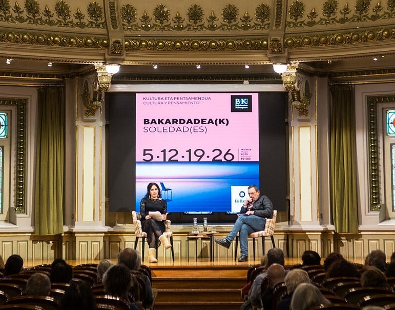 En el espléndido salón de actos de la Biblioteca de Bidebarrieta de Bilbao he estado acompañado del escritor Kepa Bilbao, dando lugar a un debate tan denso como sugerente.